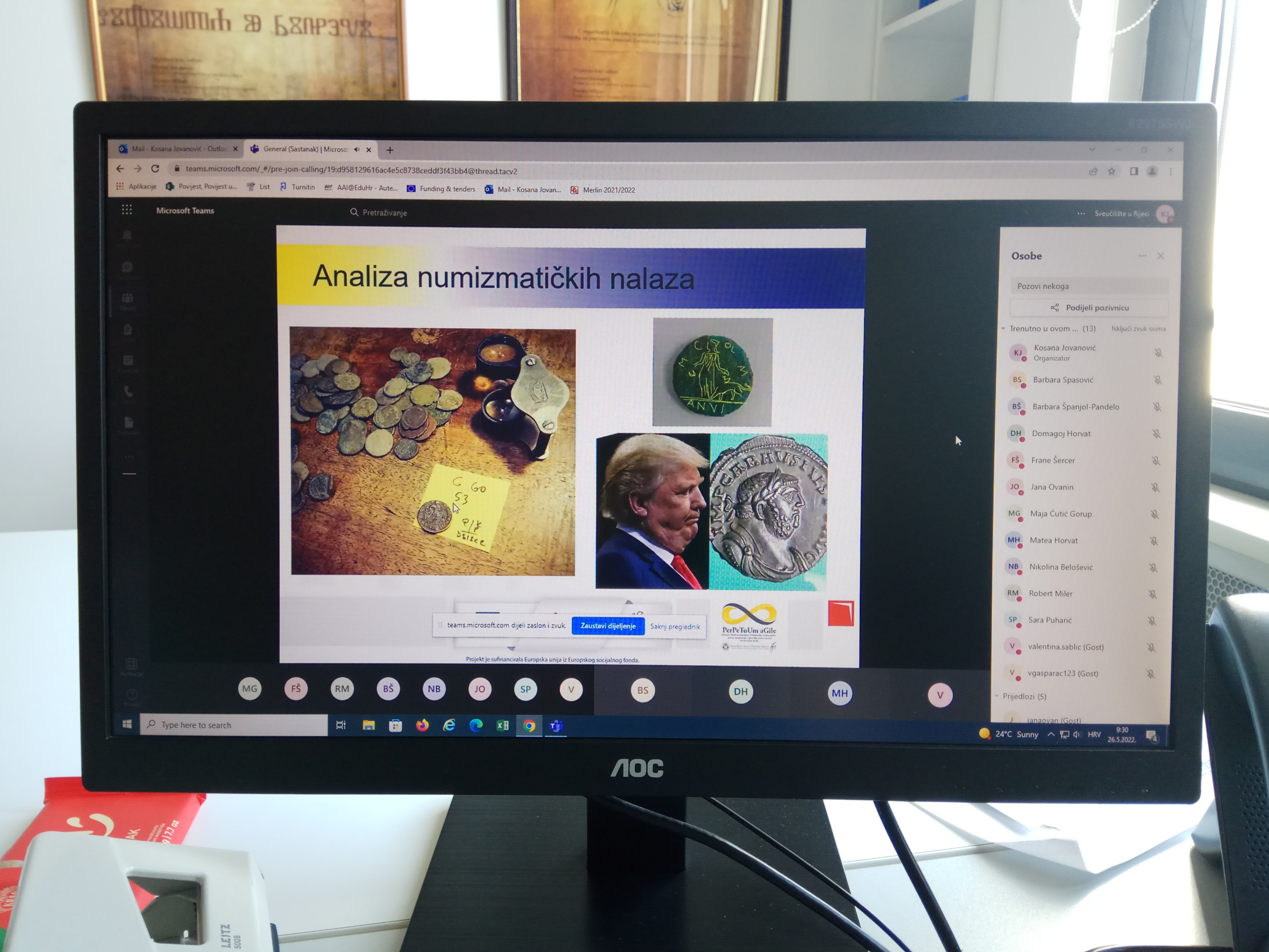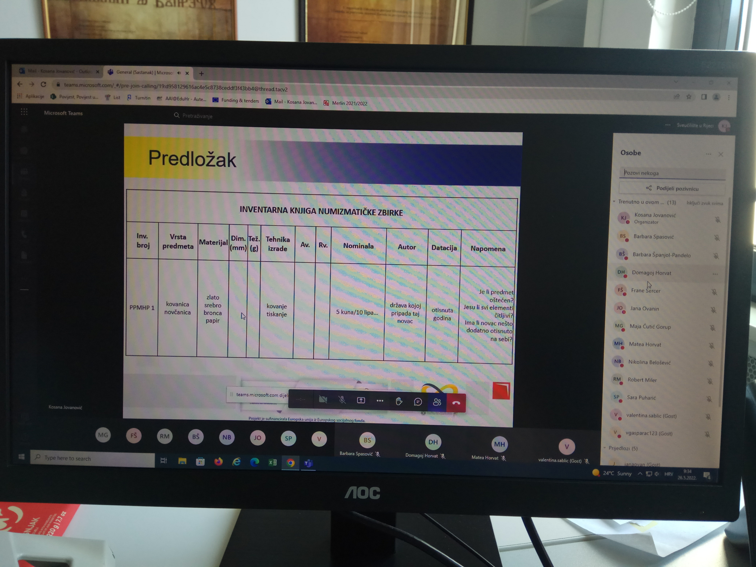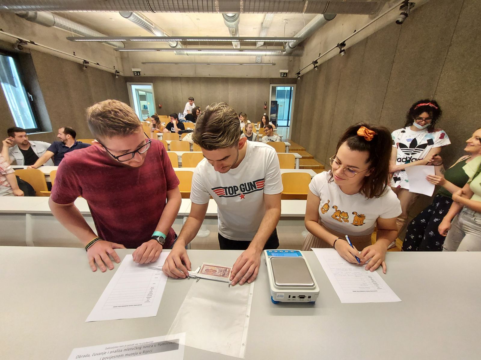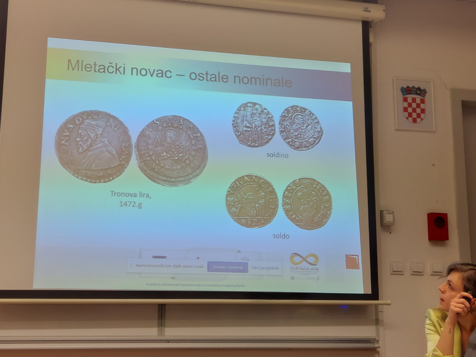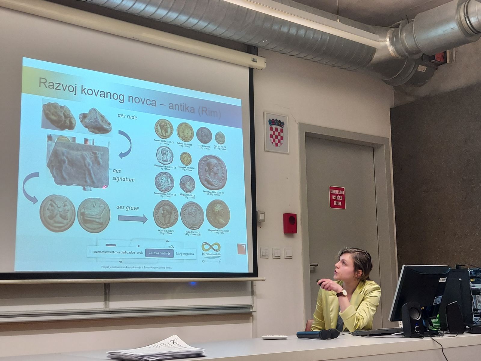 Dana 26.5.2022. u hibridnom obliku održano je gostujuće predavanje “Obrada, čuvanje i analiza mletačkog novca u Pomorskom i povijesnom muzeju u Rijeci”. Predavačica kustosica Katarina Lukić objasnila je povijest novca kroz povijesna razdoblja s posebnim osvrtom na povijest mletačkog novca, što je novac (kovanice i papirnati novac), izradu kovanog novca, prikupljanje, obradu, inventarizaciju i analizu numizmatičkih nalaza, pohranu i čuvanje numizmatičkih nalaza te kako nalaz postaje muzejski predmet. U drugom dijelu gostujućeg predavanja studenti su imali priliku na temelju predloška inventarne knjige numizmatičke zbirke proučiti novac, opisati ga, izmjeriti i izvagati.