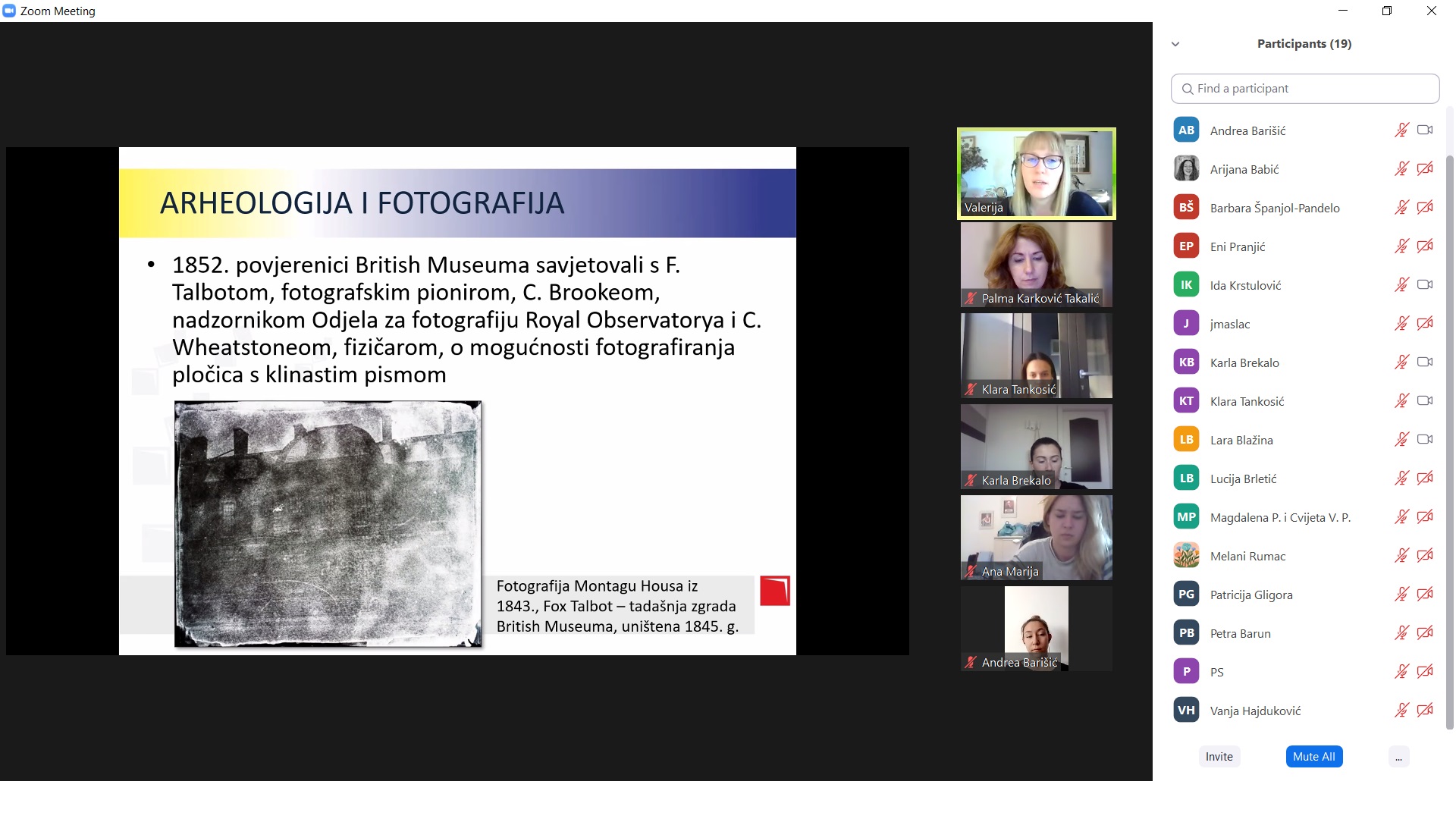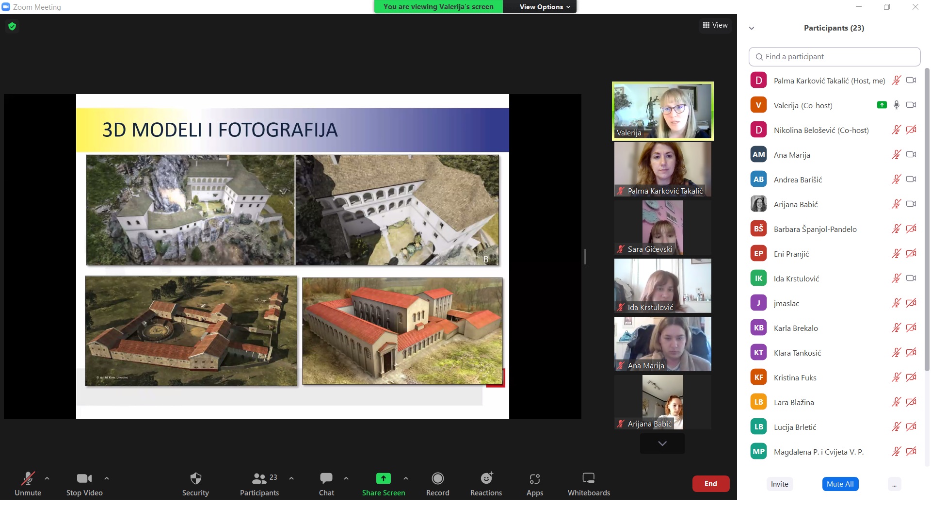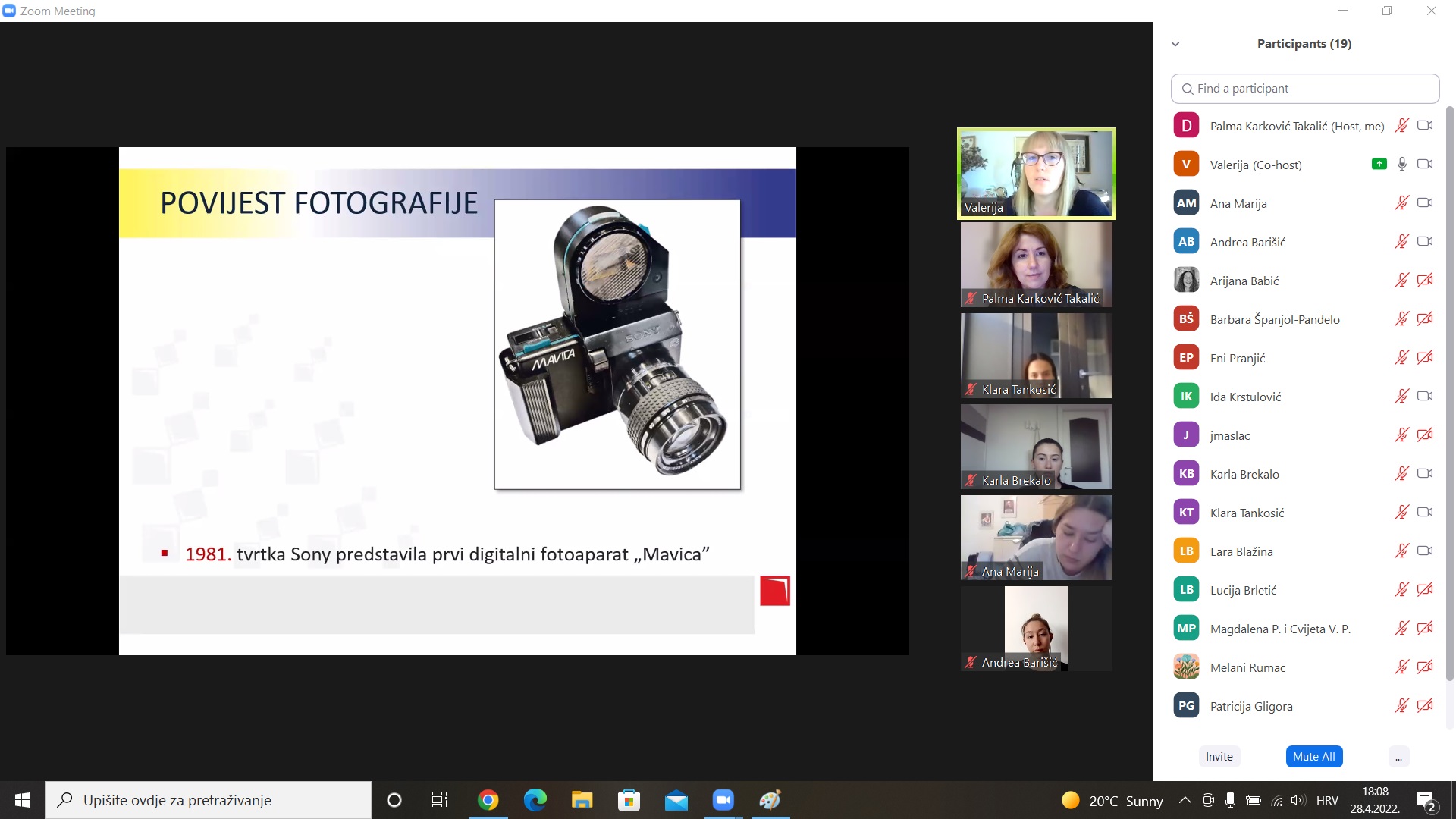 Dana 28.4.2022. održano je gostujuće predavanje “Osnove dokumentarističke fotografije” kojeg je vodila Valerija Gligora. Predavačica je na konkretnim primjerima i na temelju vizualnog materijala studentima dala uvid u povijest razvoja dokumentarističke fotografije u humanističkim znanostima, različite vrste dokumentarističke fotografije danas i njezine primjene u istraživanjima.