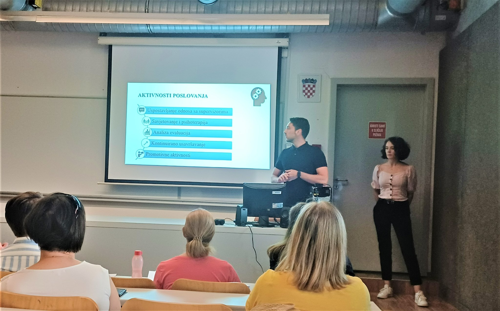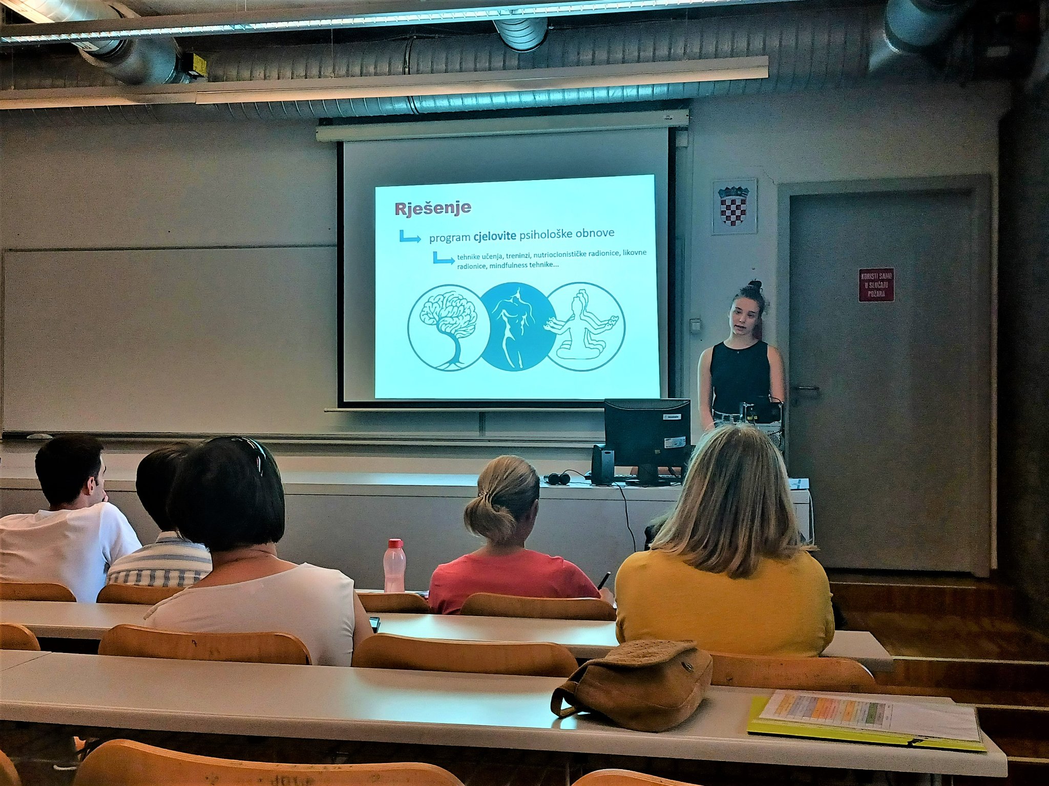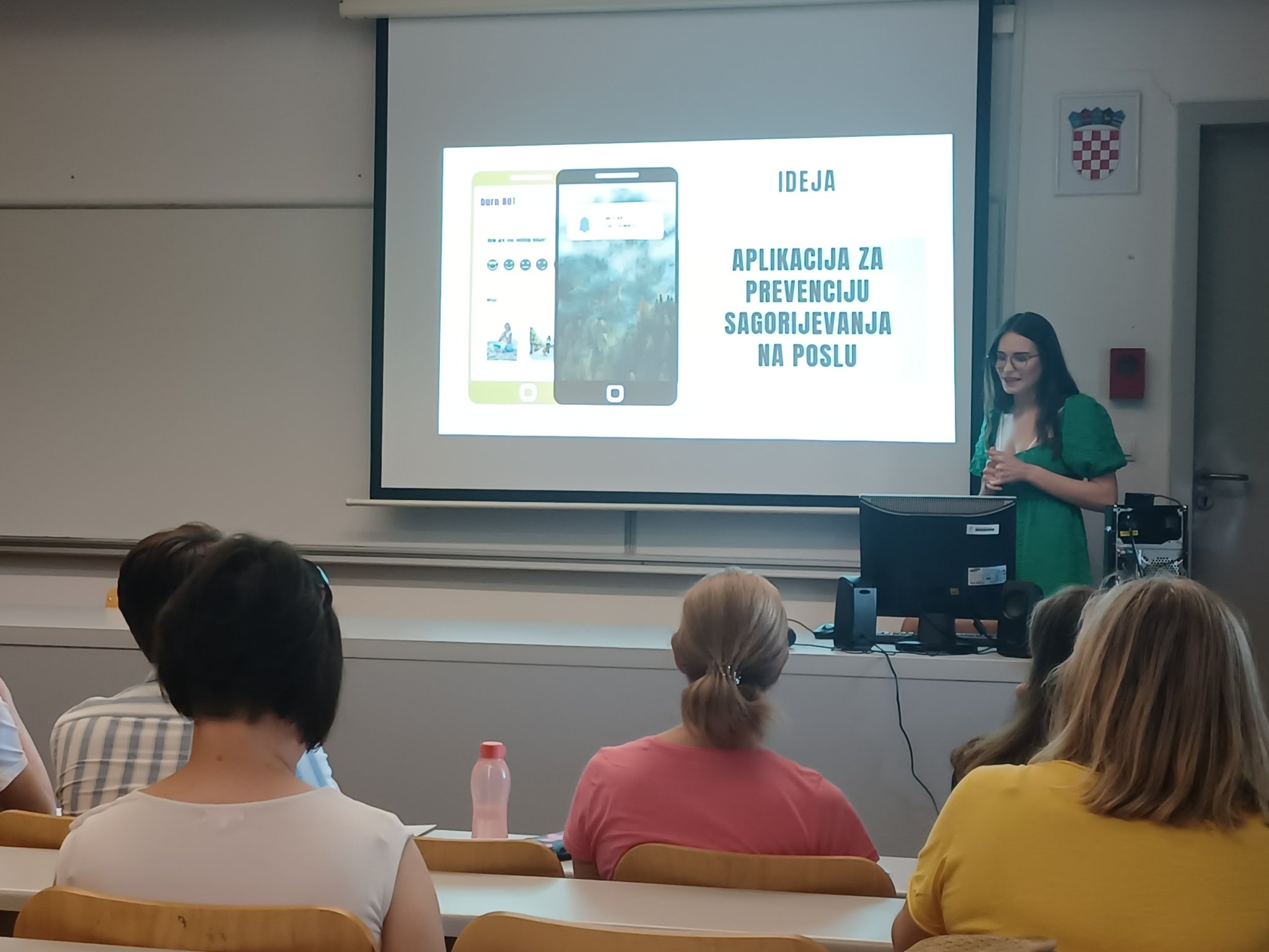 Tim 7 – Ivana Kurilić i Damjan Dušević su ocijenjeni najboljim od strane predstavnika Filozofskog fakulteta, prof. dr. sc. Aleksandre Golubović i doc. dr. sc. Barbare Španjol Pandelo, za ideju Feeling&Healing – psihološko savjetovanje studenata.