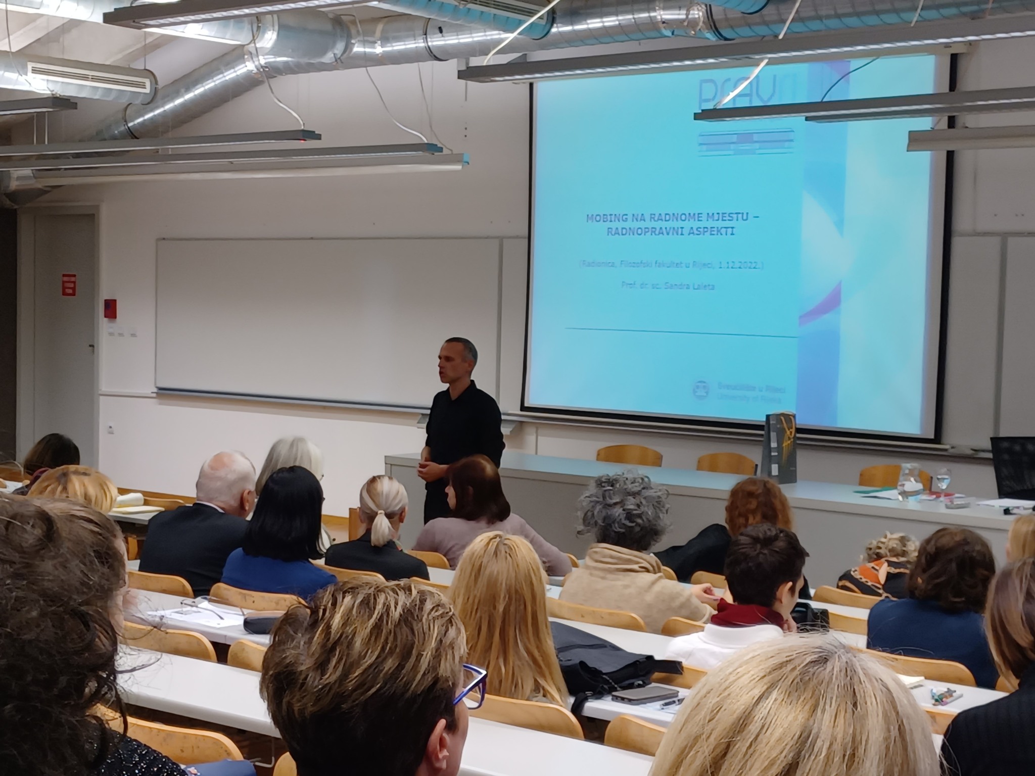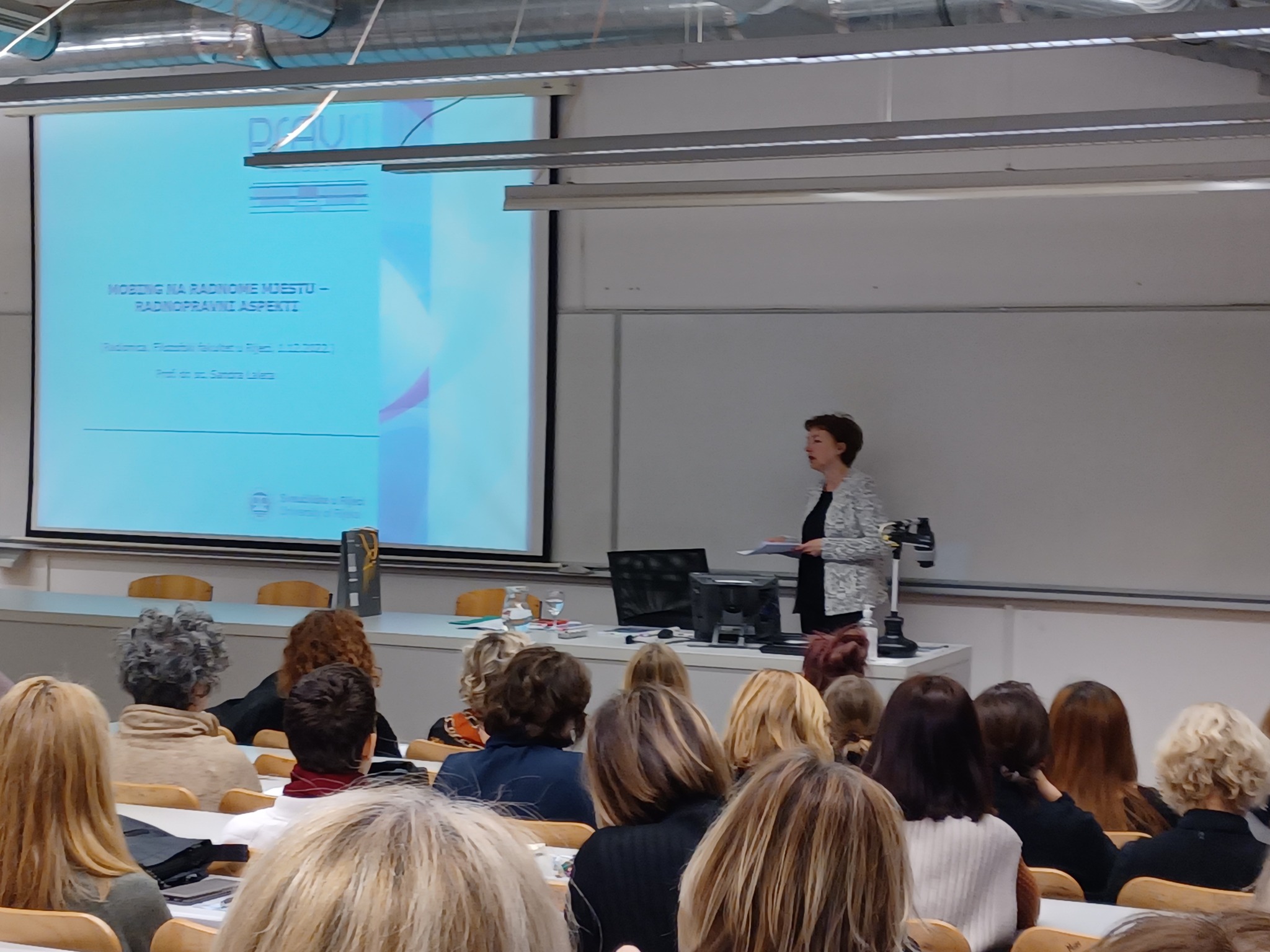 Jučer je na Filozofskome fakultetu u Rijeci održana radionica Mobbing na radnome mjestu – radnopravni aspekti. Na samom početku okupljenima se je obratio prof. dr. sc. Aleksandar Mijatović, dekan Fakulteta, naglasivši važnost spomenute teme za društvo u cjelini. Radionicu je vodila prof. dr. sc. Sandra Laleta, predstojnica Katedre za radno i socijalno pravo Pravnoga fakulteta u Rijeci, koja je prisutnima pojasnila pojmove mobbinga i diskriminacije te također navela i nekoliko primjera iz sudske prakse. Stotinjak sudionika ove edukacije, među kojima su bili ravnatelji i zaposlenici obrazovnih institucija, stručnjaci za ljudske resurse iz raznih tvrtki, pravnici i suci riječkih sudova te nastavno i nenastavno osoblje Sveučilišta u Rijeci, imali su priliku međusobno razmijeniti iskustva i razmišljanja o mobbingu kao o učestaloj pojavi u radnome okruženju.