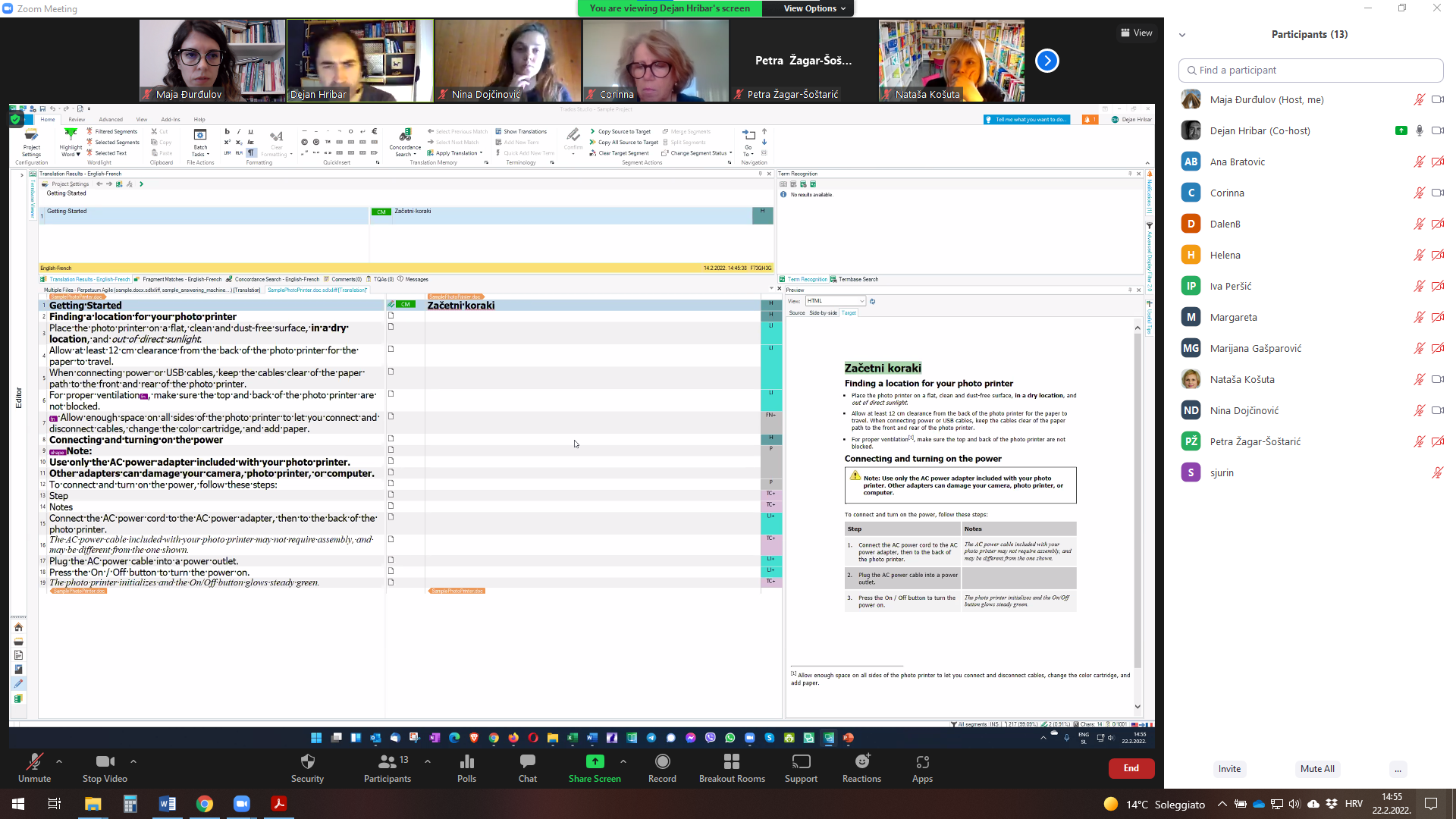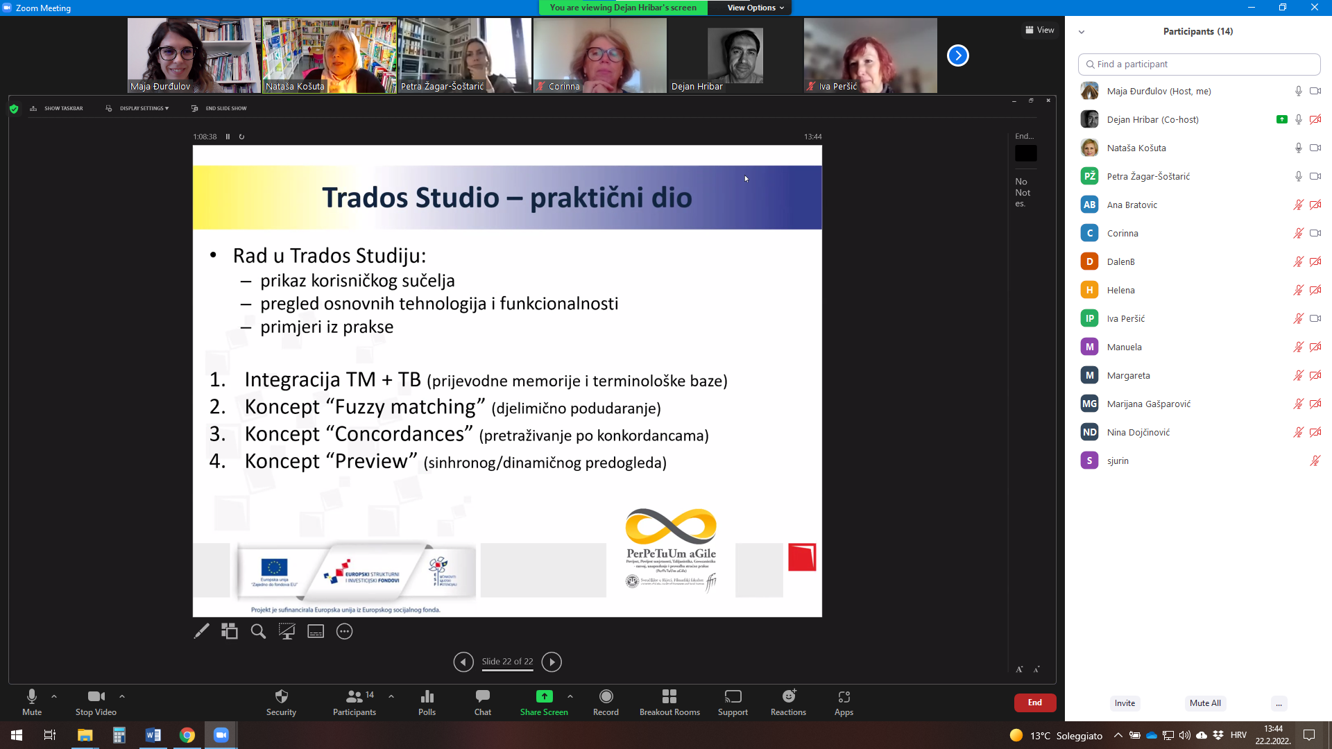 22. veljače 2022. godine drugu edukaciju održao je Dejan Hribar, certificirani je predavač za SDL Trados Studio i druge alate za prevoditeljstvo. Edukacija je namijenjena nastavnicima germanistike i talijanistike, a cilj je upoznati nastavnike s konceptima strojnog prevođenja i računalno potpomognutog prevođenja, s posebnim naglaskom na softver Trados Studio.