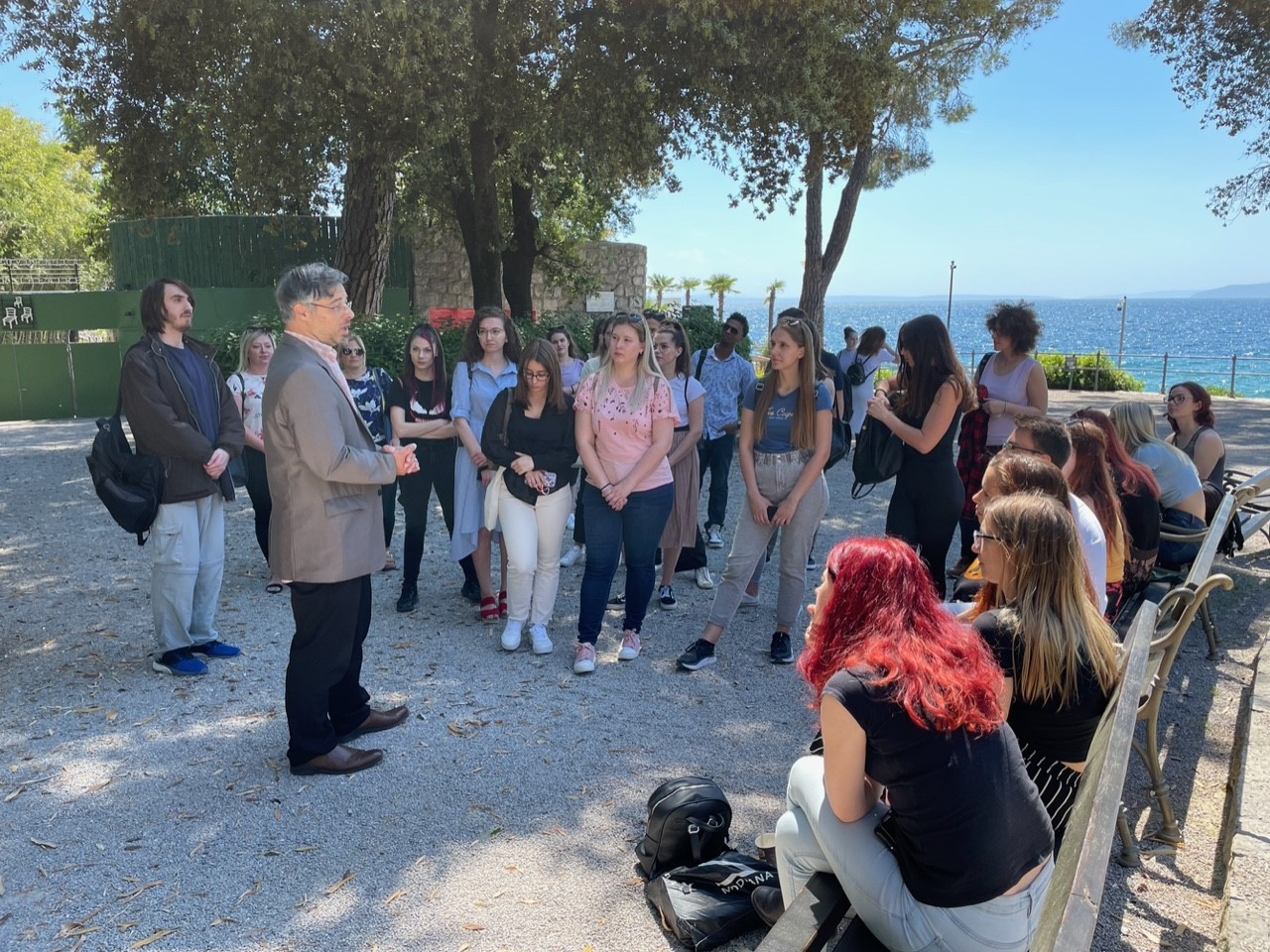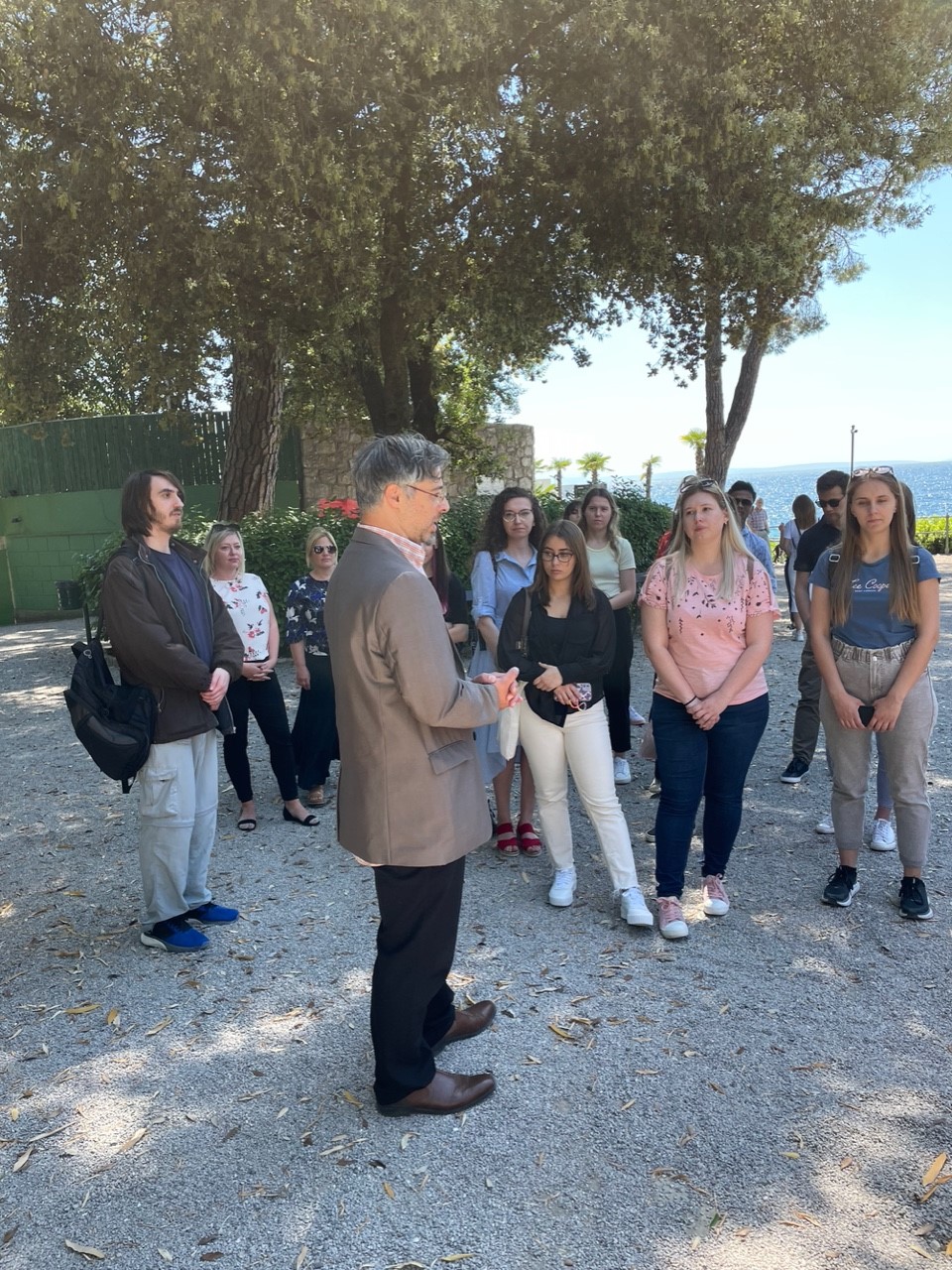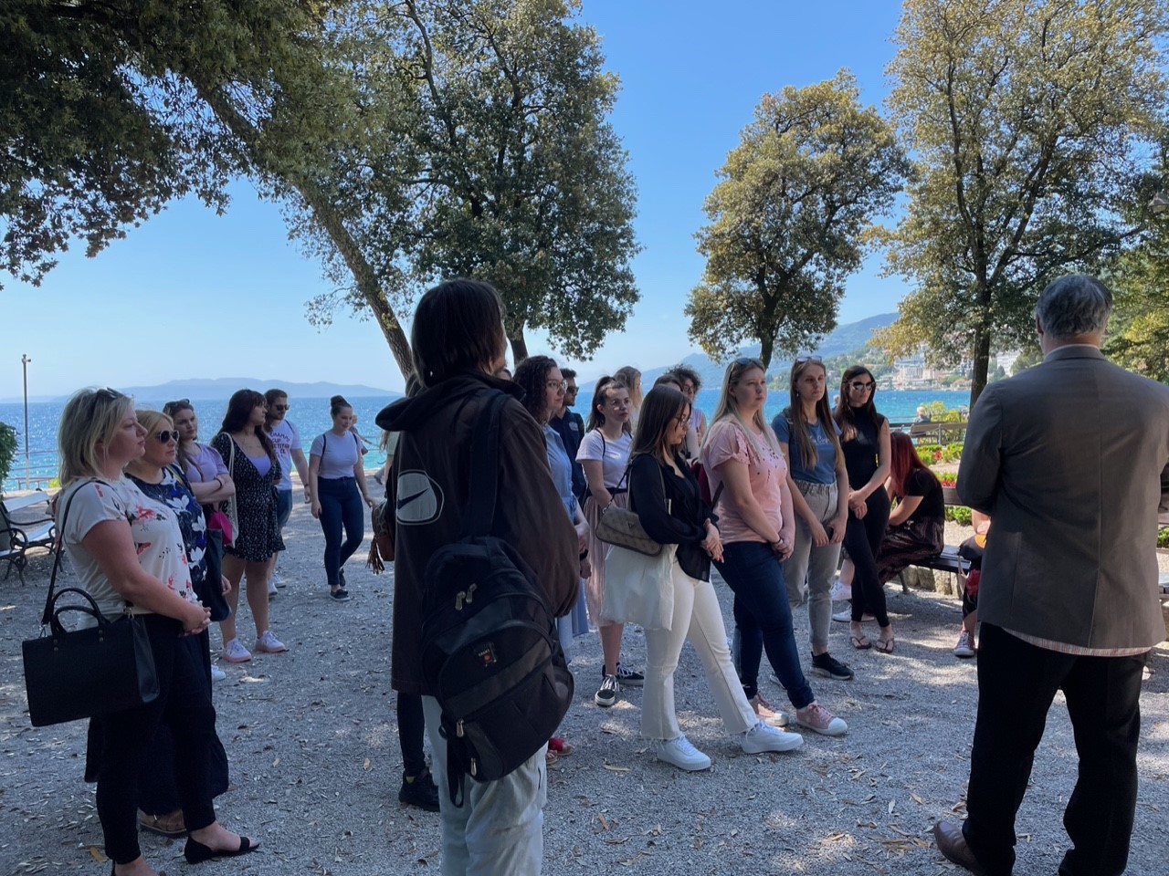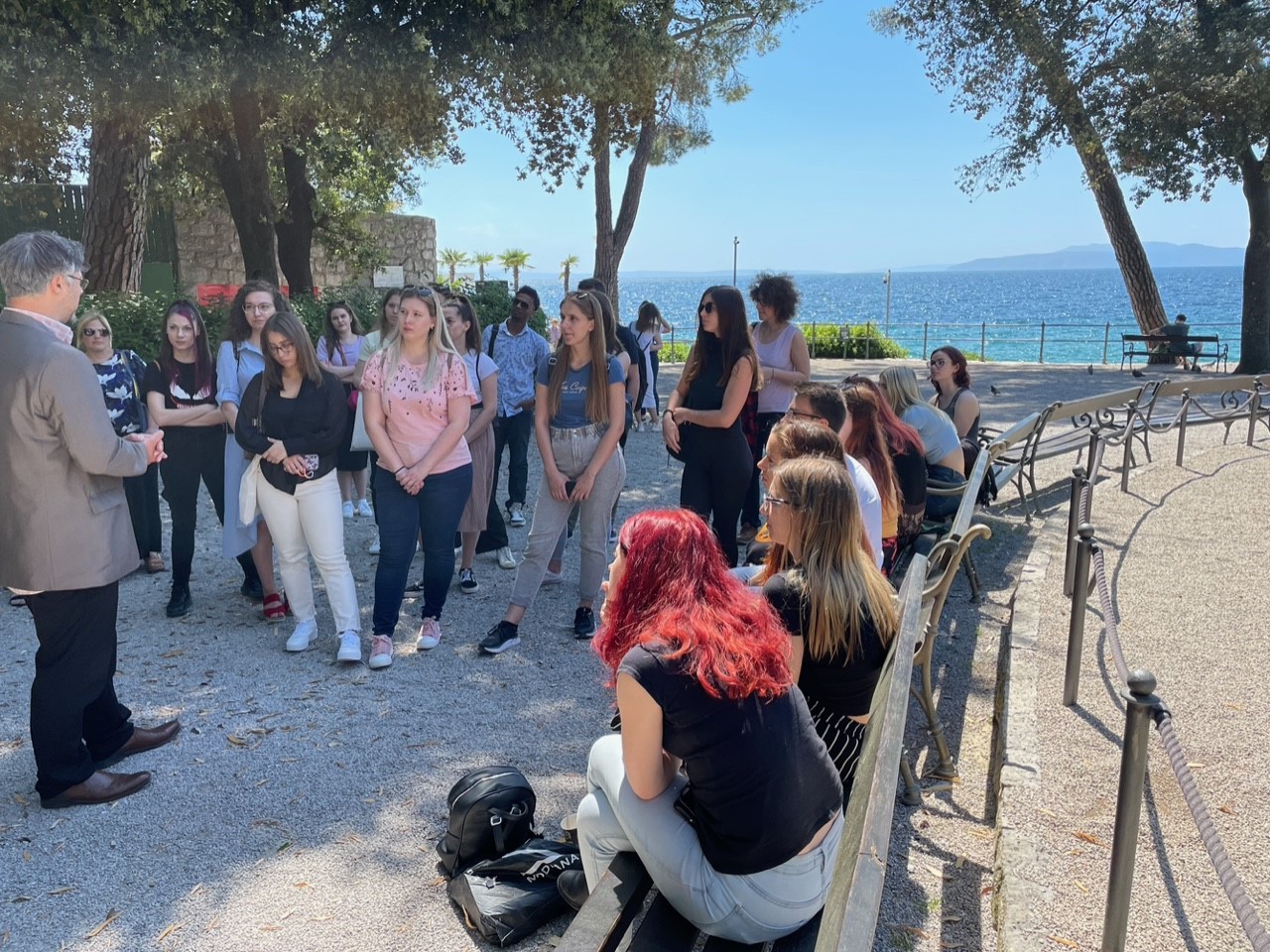 Dana 18.5.2022. održana je terenska nastava za studente germanistike u Opatiji. U sklopu terenske nastave studenti su posjetili brojne znamenitosti Opatije te se upoznali sa radom kulturne institucije Festival Opatija koja organizira brojne manifestacije i događanja na opatijskom području. Pod stručnim vodstvom mentora iz Festivala Opatije studenti su provedeni lokalitetima te upoznati sa primjenom istih u turističke i kulturne svrhe.