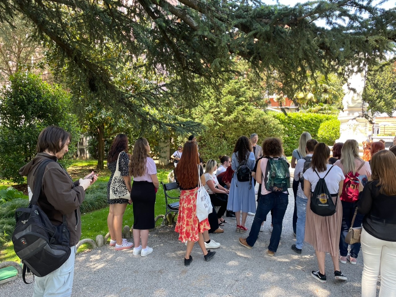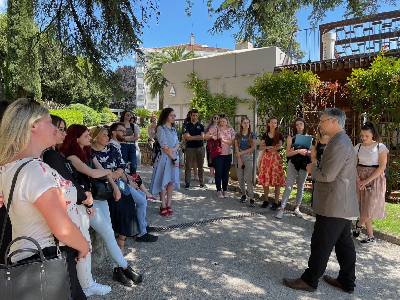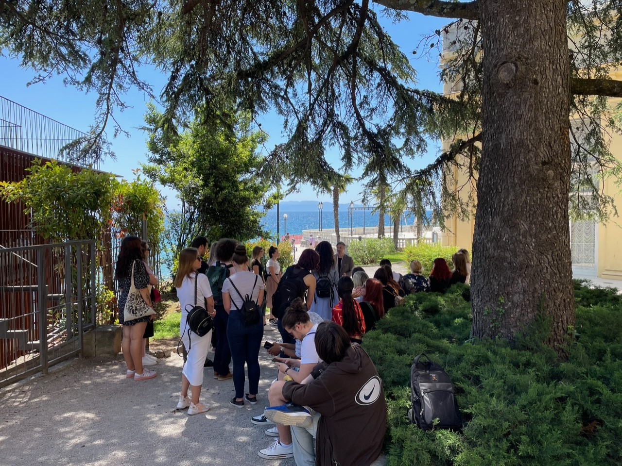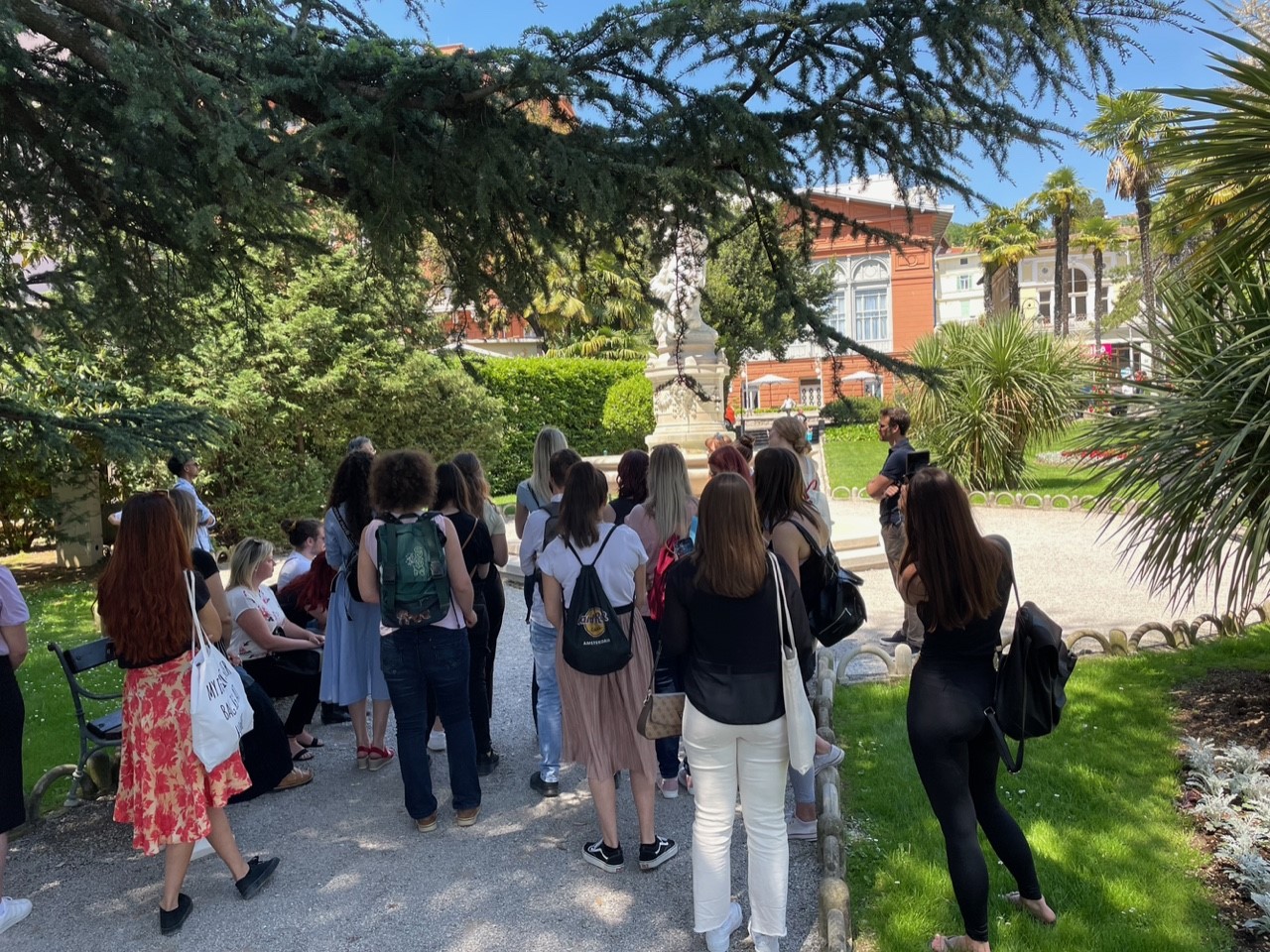 Dana 18.5.2022. održana je terenska nastava za studente germanistike u Opatiji. U sklopu terenske nastave studenti su posjetili brojne znamenitosti Opatije te se upoznali sa radom kulturne institucije Festival Opatija koja organizira brojne manifestacije i događanja na opatijskom području. Pod stručnim vodstvom mentora iz Festivala Opatije studenti su provedeni lokalitetima te upoznati sa primjenom istih u turističke i kulturne svrhe.